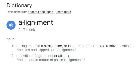 Definition of Alignment by Google from Oxford Languages